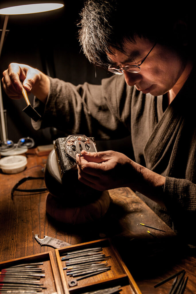 愛刀の鐔を自分の手で作ってみたい、という方から物作りに興味がある方まで、幅広い層の人を外弟子として受け入れを行っています。